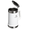 No need to hunt down a bottle opener. Because this smart beer stein has one built right in. How great is that You also get a stainless-steel. flip-up lid to keep the cold and carbonation going for up to 8 hours. And with the heavy-duty handle. you can comfortably hoist a pint all party long.