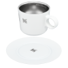 For added peace and quiet. both the cup and saucer feature a sound-softening. non-slip silicone base. The cup’s circular handle is designed for comfortable sipping while the double-wall vacuum insulation keeps your favorite hot beverage at the ideal temperature. The Stillness Saucer also gives you room for a spoon and biscotti.