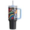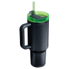 The 40-ounce Quencher H2.0 FlowState Tumbler keeps your drink ice cold for hours. thanks to double-wall vacuum insulation. It fits right in your car cupholder for when you take your celebration on the road. And the versatile. green glowing FlowState 3-position lid has three sip settings: one for the reusable straw. one without and the option to rotate the silicone cover shut.