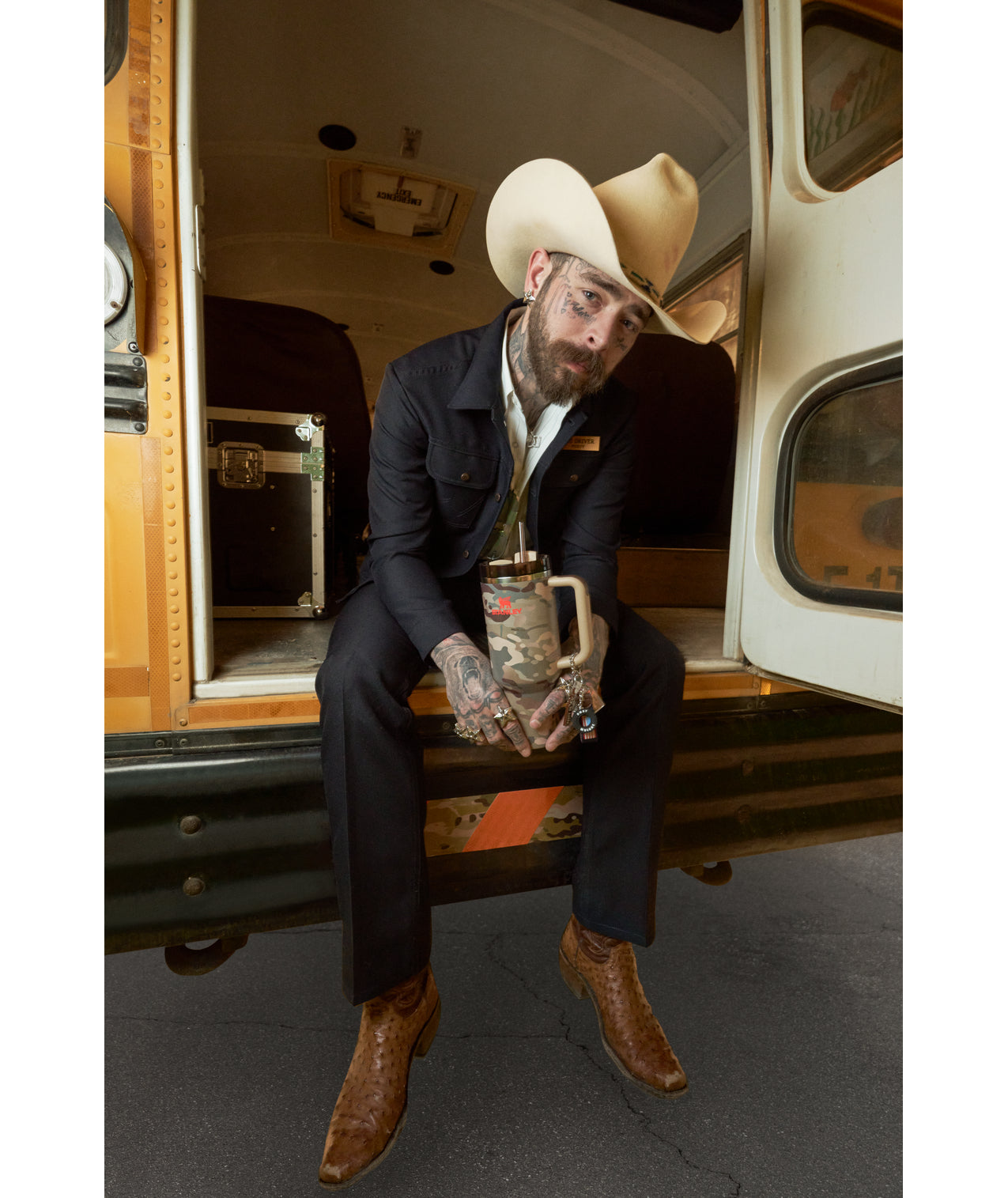 Embody the Posty spirit in a new collaboration that features his designs in MultiCam and a hit of Blaze Orange. With the Stanley 1913 & Post Malone Collection. the Quencher keeps 40 ounces by your side through the work. the thrills and everything in-between. And yeah. that’s a Posty Co. keychain hitching a ride.