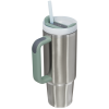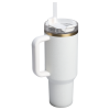 This Quencher H2.0 is generously sized (but not oversized) with an easy-carry. comfort-grip handle and a narrow base that will fit most cup holders. Long day of meetings Rowing class Trip out of town Our durable 30 oz tumbler. made with recycled stainless steel. is up to the hydration challenge. The double-wall vacuum insulation will keep your water cold for 9 hours and iced for 40 hours. And to cap things off. there’s an advanced FlowState lid that features a rotating cover with three positions: a straw opening designed to resist splashes with a seal that holds the reusable straw in place. a drink opening. and a full-cover top.