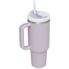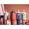 Treat yourself to trendsetting. all-day hydration with our Quencher H2.0 in Soft Matte. The grippable silicone finish offers a stylish. sophisticated look and a warm. velvety feel. Yet it’s dishwasher safe with all the durability you count on from Stanley. Beneath the unique Soft Matte finish is recycled stainless steel construction and double-wall vacuum insulation. And at the top is an advanced FlowState lid. featuring a rotating cover with three positions: a straw opening designed to resist splashes with a seal that holds the reusable straw in place. a drink opening. and a full-cover top for added leak resistance. We’ve also included an ergonomic. comfort-grip handle. so you can easily carry your ice-cold water to work. book club meetings. the gym or on weekend getaways. The narrow base is made to fit nearly any car cup holder.