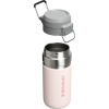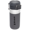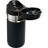 The Quick Flip GO Bottle can fit in most cup holders so it can ride along in your vehicle. The Double Wall Insulation keeps your favorite tea. coffee. or other hot drinks hot for up to 8 hours or cold for up to 12 hours. This trigger action lid makes this travel thermos spill-proof and easy for one-handed use. The lid is designed with a push button. which opens the mouthpiece on top. You can throw this in your work bag without worrying.