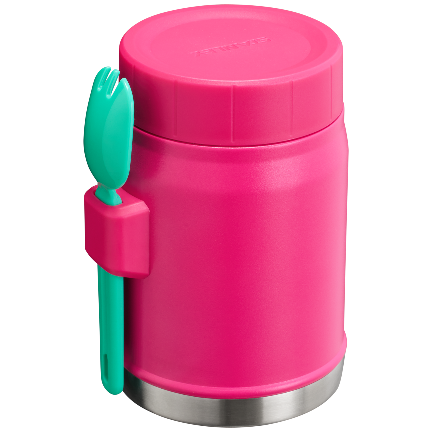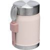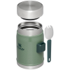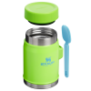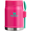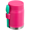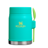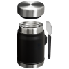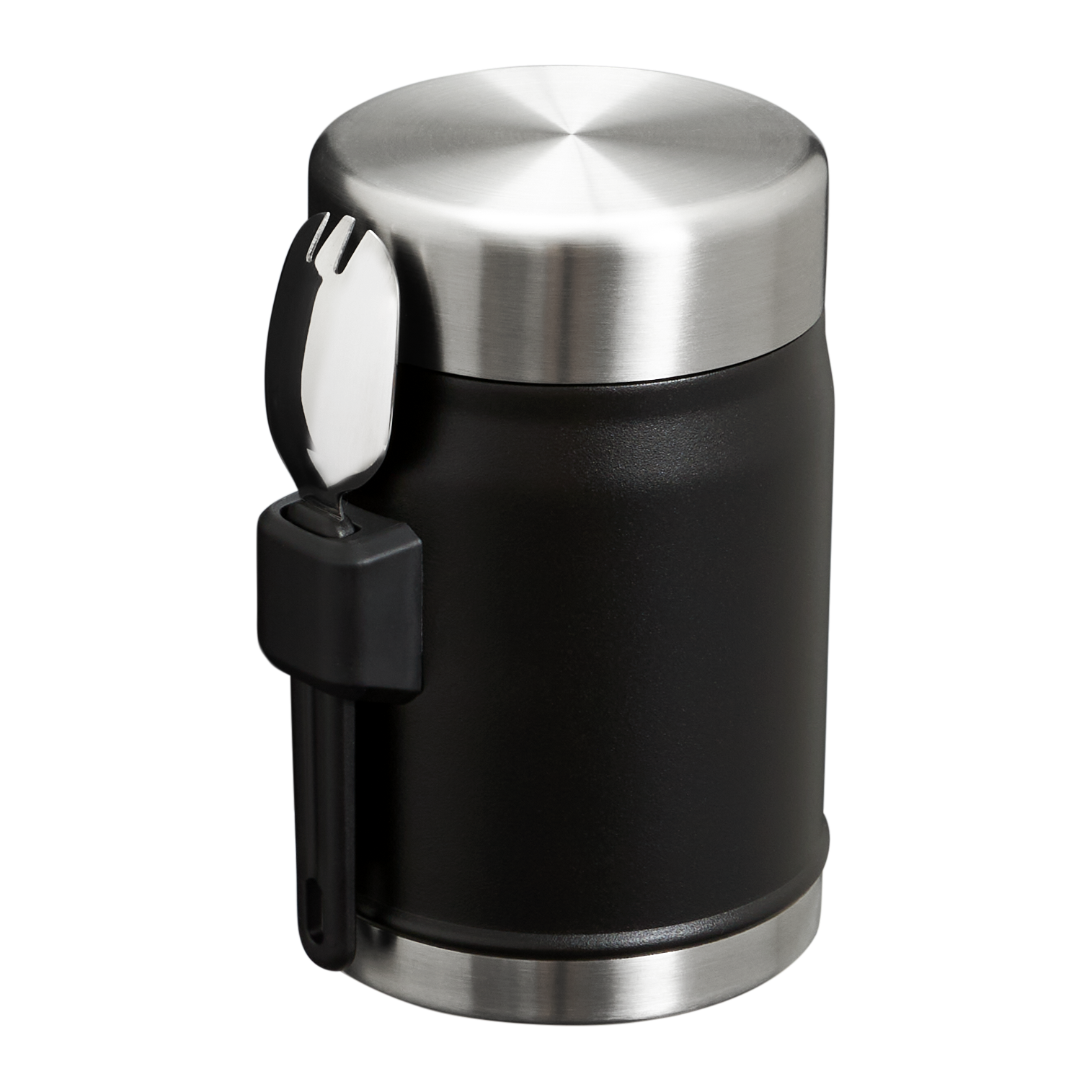 This on-the-road or at-the-campsite food jar has all the bells and whistles. Compact?M??ut with plenty of room for your favorite hot or cold recipe. An insulated lid with a pressure-release valve for easy opening. And last but not least. a stainless-steel spork that fits securely into the attached bracket on the side. Bon appetite!