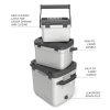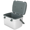 Ruggedly lightweight. leakproof and boasting more than twice the foam insulation of a typical cooler. this Adventure is ideal for tailgates. fishing trips and even all-day festival festivities. It’s roomy enough to hold 21 cans of your favorite brew or soda and can keep ice frozen for over a day. There’s even an adjustable bungee system for securing your favorite Stanley bottle to the lid.