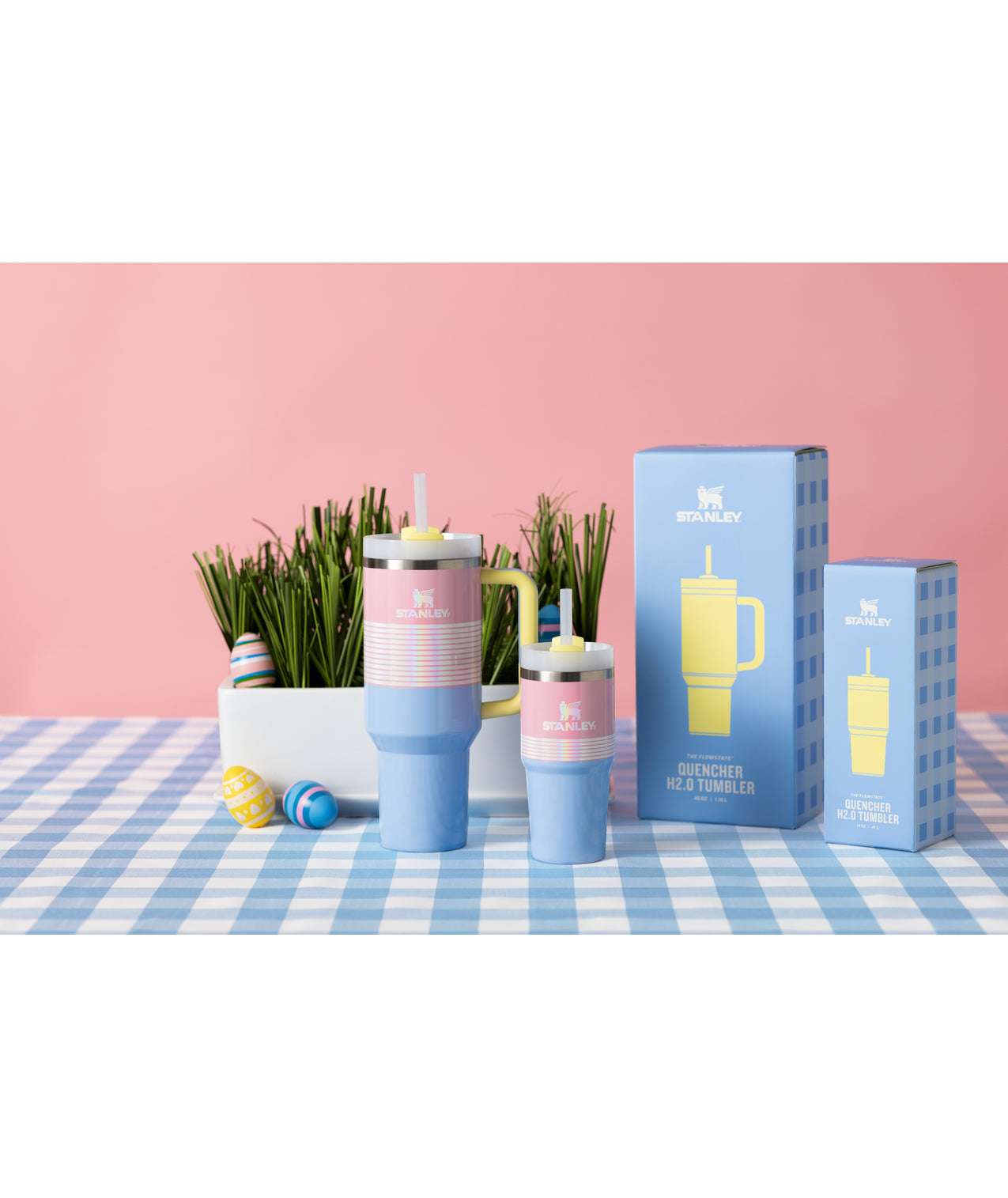 Easter egg-citement awaits! The Quencher H2.0 FlowState Tumblers arrive in exclusive gingham blue boxes. Look closely. and you’ll find tiny bunny ears decorating the Stanley trademark. Treat your loved one with the gift of hydration in spring pastels.