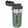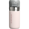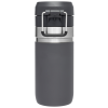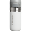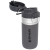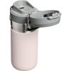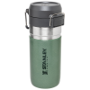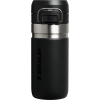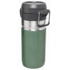 The Quick Flip GO Bottle can fit in most cup holders so it can ride along in your vehicle. The Double Wall Insulation keeps your favorite tea. coffee. or other hot drinks hot for up to 8 hours or cold for up to 12 hours. This trigger action lid makes this travel thermos spill-proof and easy for one-handed use. The lid is designed with a push button. which opens the mouthpiece on top. You can throw this in your work bag without worrying.