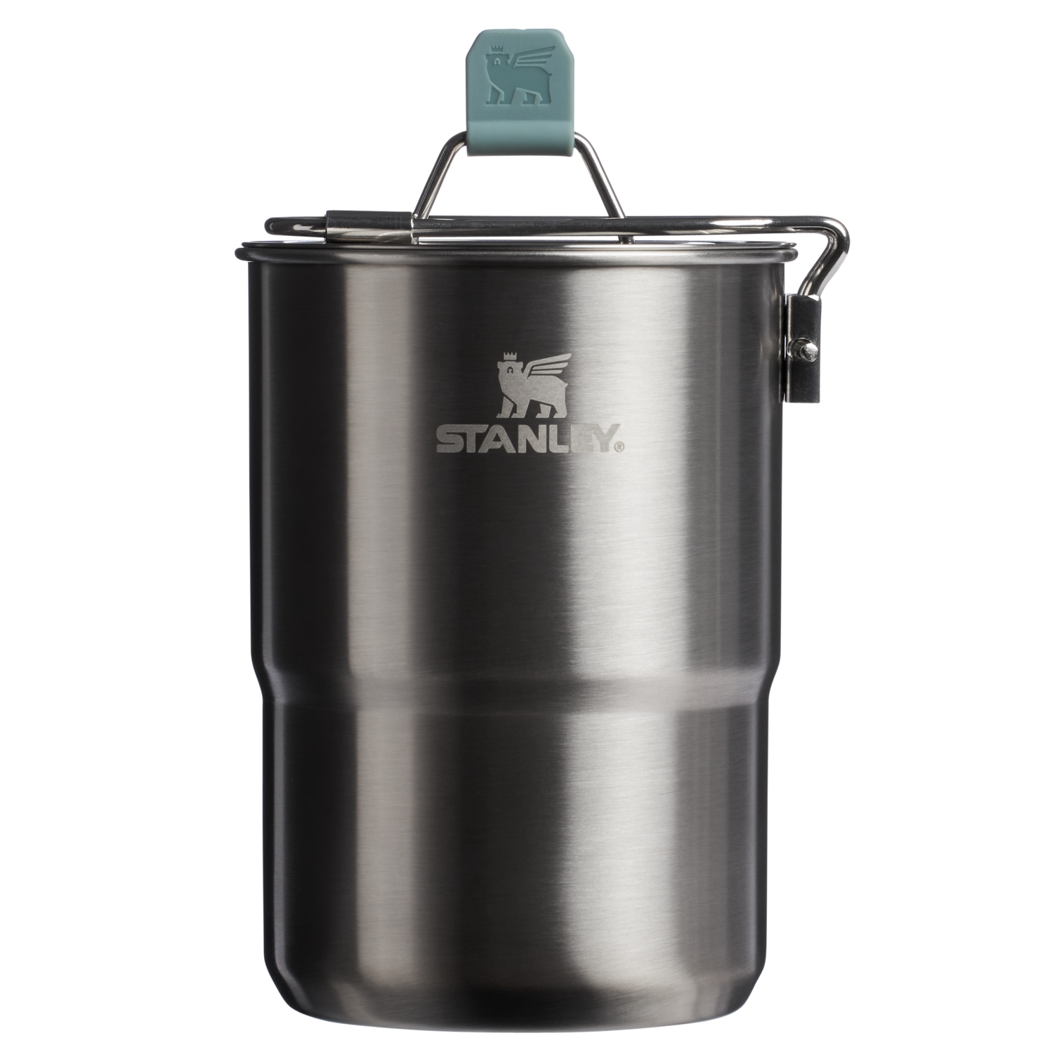 The lightweight Wildfare Go Two Cup Cookset nests neatly together for efficiency. Open the 24-ounce stainless steel pot to find two 10-ounce double-wall insulated cups. For one-pot cooking. unfold the handle and set the pot over your burner of choice. The stainless steel lid includes holes to vent. strain or release steam. All the luxury of cooking at home. in the wild.